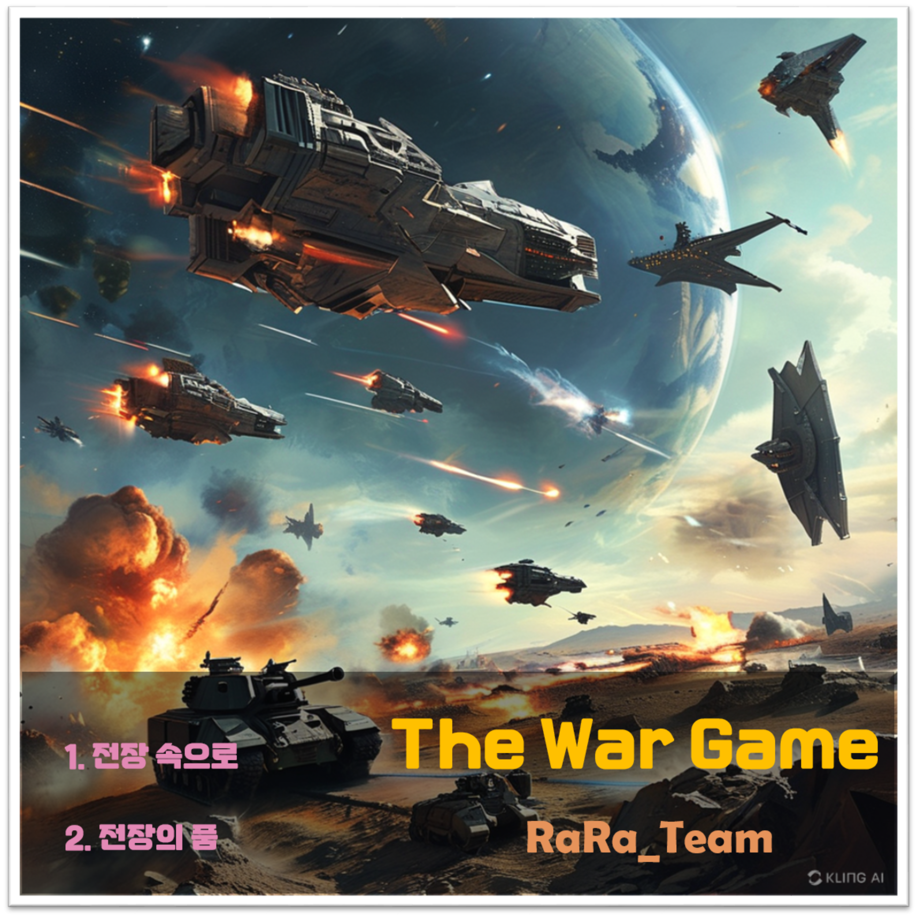 어제 버전 1이 마무리 되었기에 오늘은 연주곡 앨범을 등록했다. 웅장한 서사시 느낌의 곡이기에 어떤 제목을 붙일까 고민을 하다가 전쟁이라는 키워드를 활용했지만 실제적인 전쟁보다는 게임으로 이름을 바꿨고 이미지는 우주전쟁과 같은 콘셉으로 만들었다.